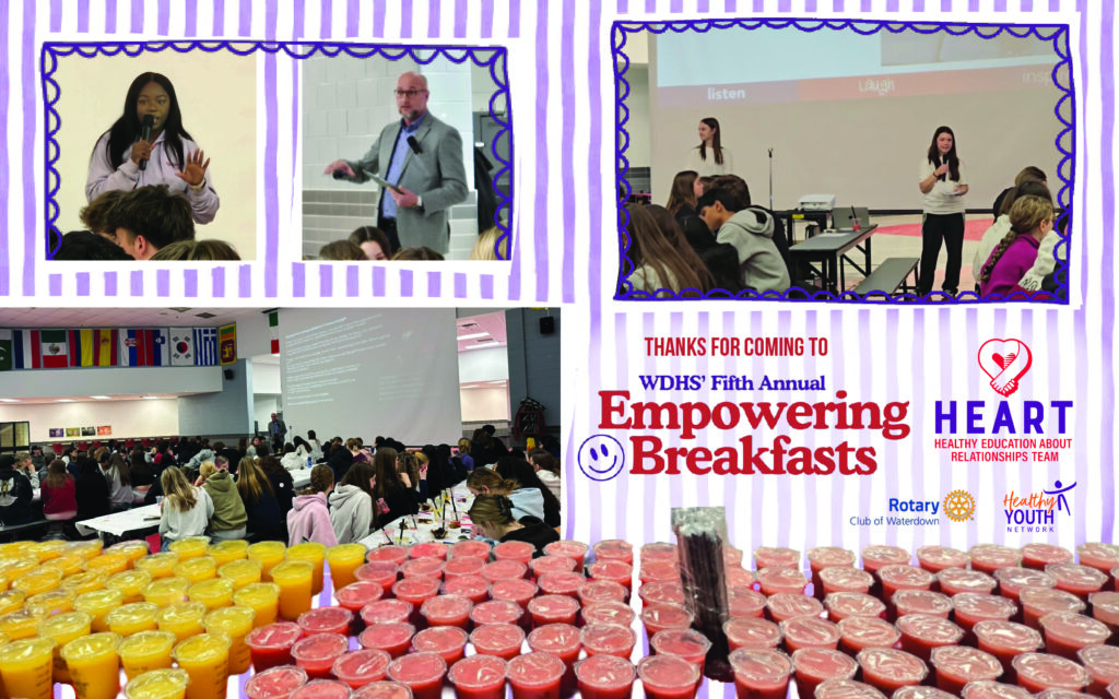 We held our 5th Empowering Breakfasts at WDHS on the final day of the 16 Days of Activism Against Gender-Based Violence. Joëlle Kabisoso, founder of Sisters in Sync, and Mr. Jeffery, a veteran of the Canadian military, spoke about mental health, gender-based violence, masculinity, and bystander intervention. They shared personal stories and experiences, and ended with action items that students can do everyday to support their friends and help create safer and supportive communities. From Mr. Jeffery, “Check on your buddy,” and from Joëlle, “We Got You, Sis!”
